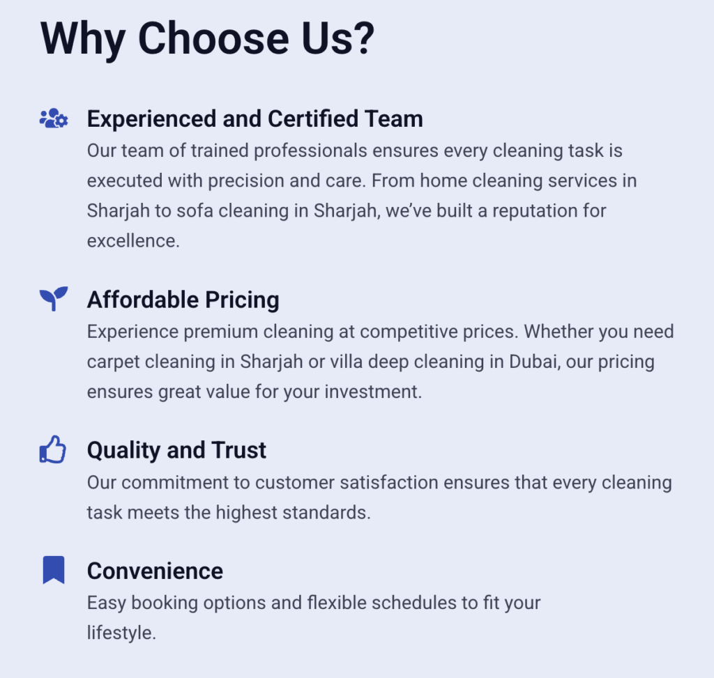 - Dubai: Comprehensive solutions for homes and businesses, including deep cleaning Dubai and sofa upholstery cleaning Dubai.